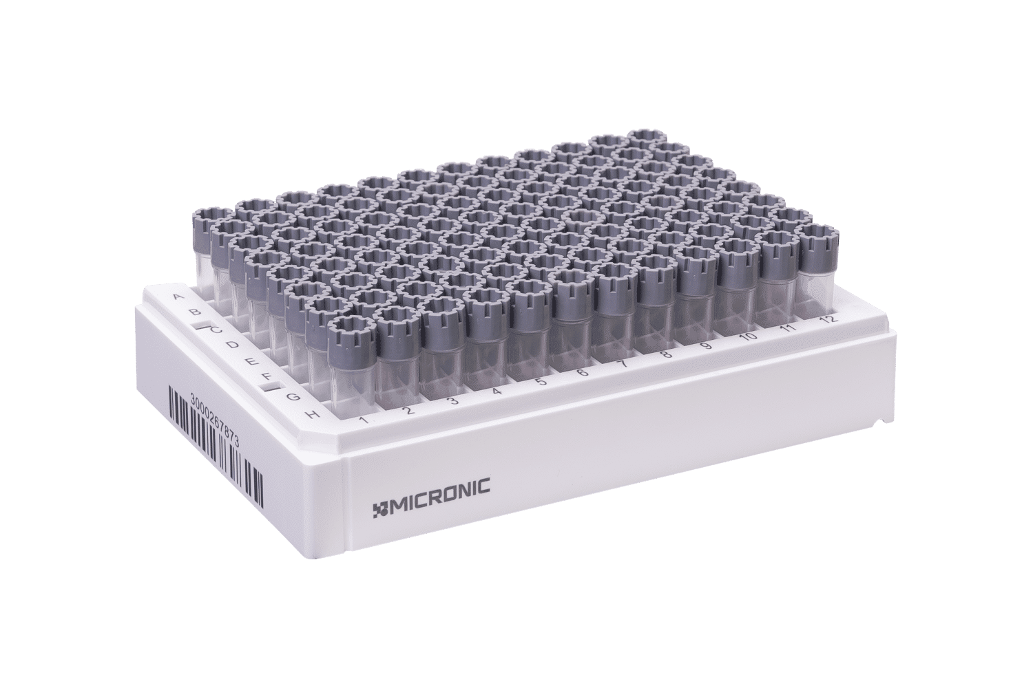 0,80 ml-rørene fås som standard med 2D-data-matrix-koder, rackene har 1D-stregkoder, og koderne er permanent lasergraverede.