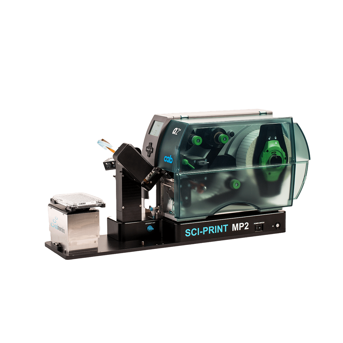 Sci-Print MP2 fra Scinomix er en halvautomatisk etiketprinter til mikroplader. Sci-print MP2 printer og påfører etiketter på en lang række mikrotiterplader, der fås markedet.
