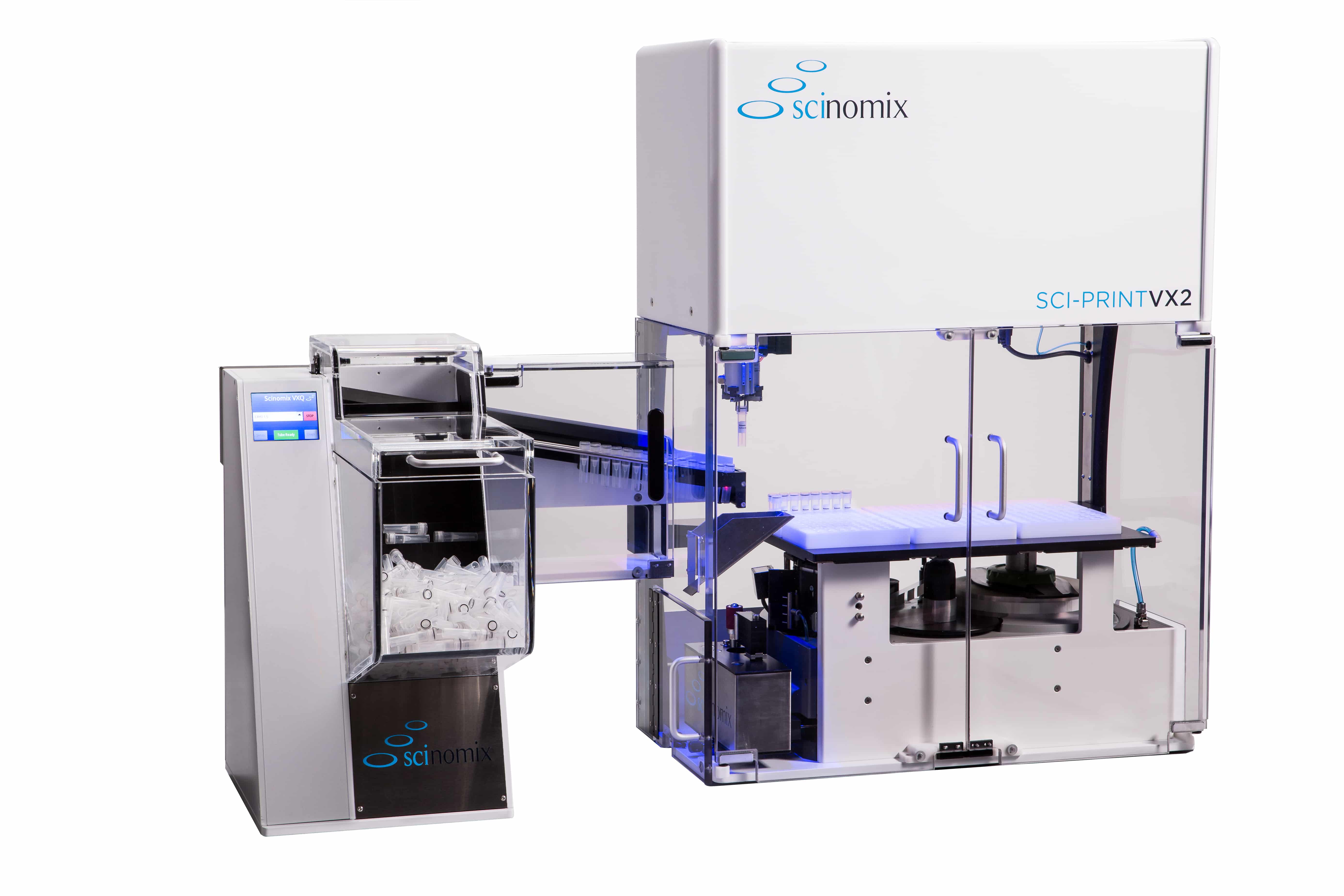 Sci-Print VX2 fra Scinomix er et fuldautomatisk røretiketteringssystem. Denne højteknologiske etiketprinter er et fuldt modulært system, så du løbende kan opgradere din arbejdsgang i laboratoriet. VX2 er også meget alsidig og kan nemt integreres i dine eksisterende etiketteringsmetoder uden, at en masse komponenter skal ændres.