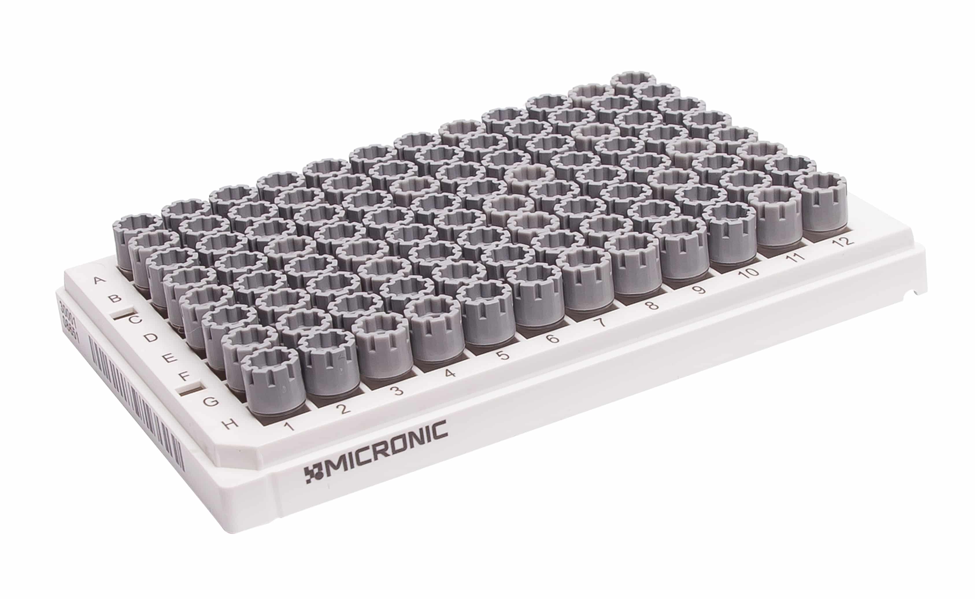 The 0.30ml tubes are standard available non-coded or with 2D Data-Matrix codes, the racks are 1D barcoded, and the codes are permanently laser-etched.