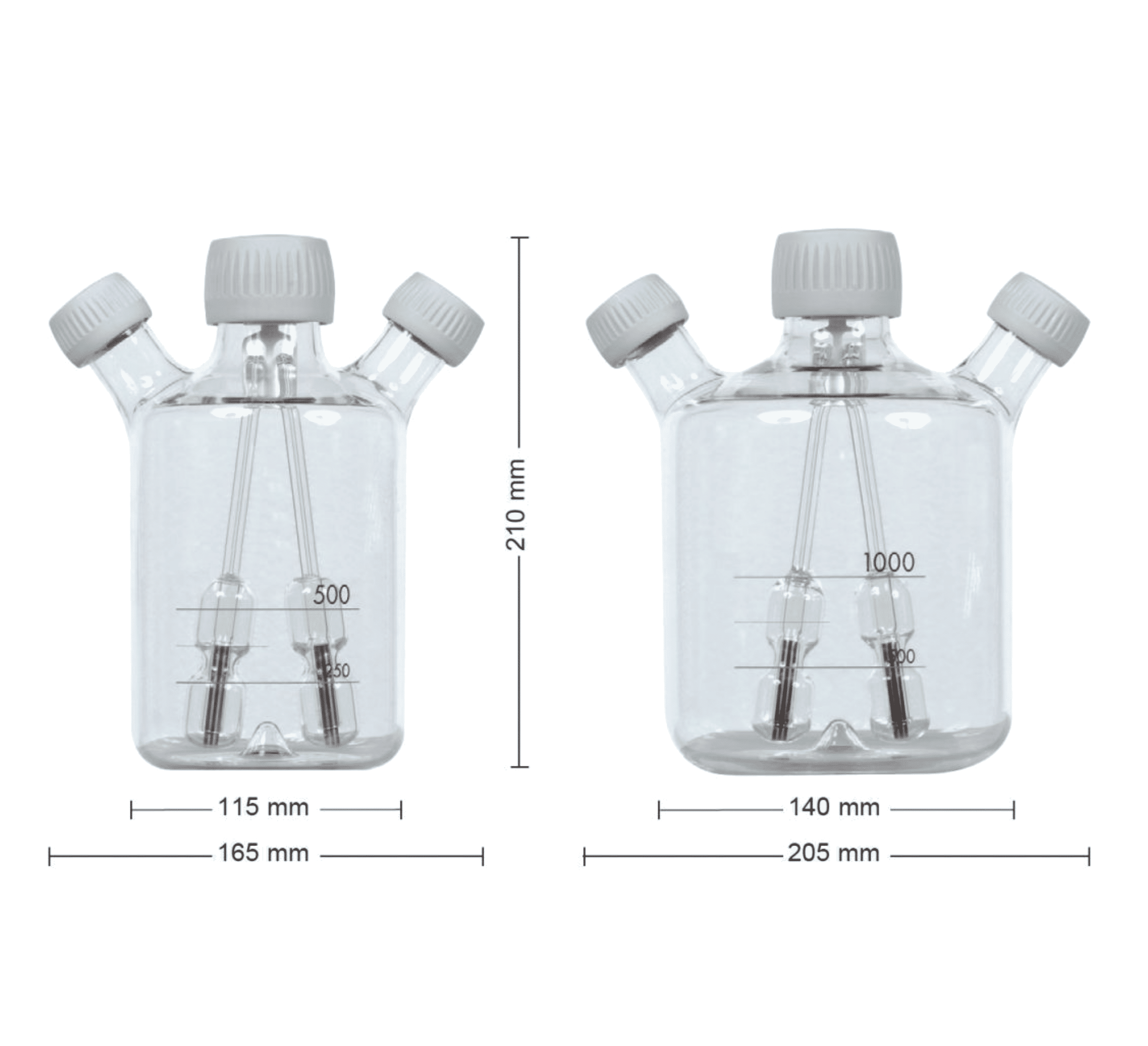 Compact stirring unit suitable for four different flask sizes (100, 250, 500, 1000 ml) allowing convenient culture scale-up.