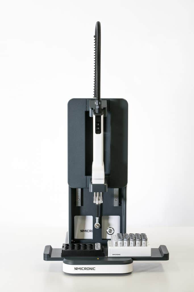The Micronic Docking Station is a useful add-on for our Micronic CS500, CS510 and CS520 Screw Cap Recappers that offers the consistency of an automated recapping system, but at a much lower cost.