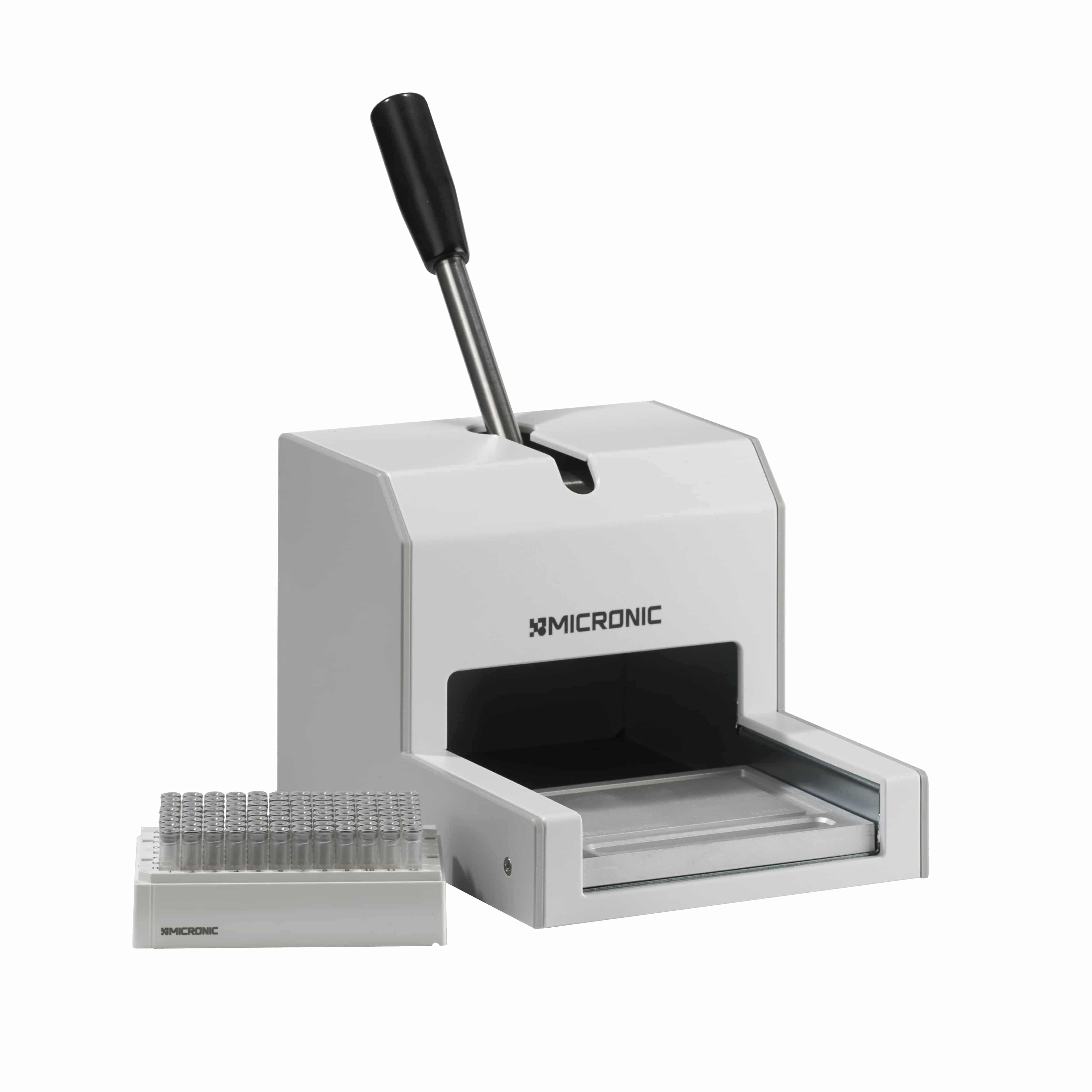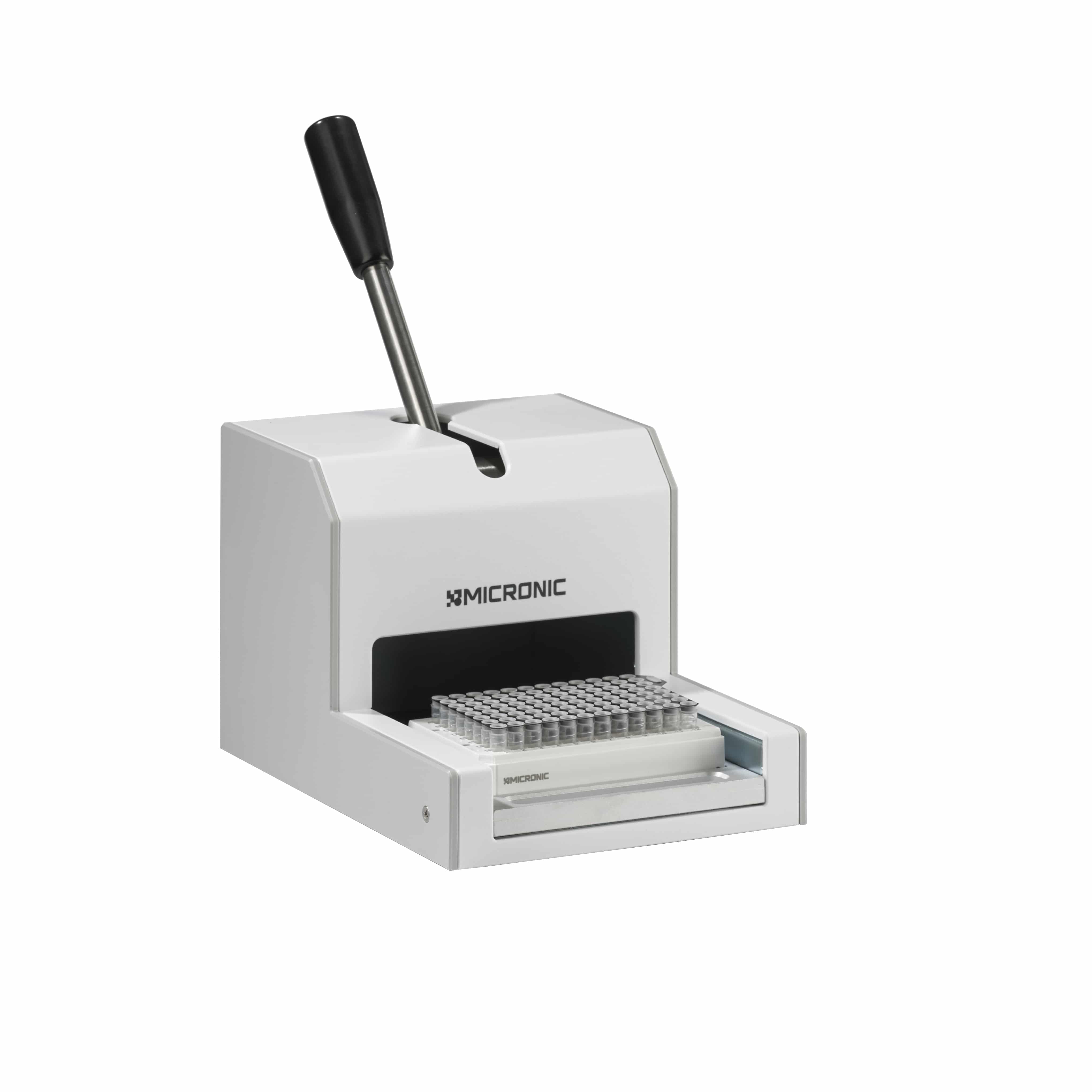 The capper is also compatible with other brands of storage tubes and racks. The manual capper repeatably and securely caps tubes (up to 1.40 ml) in all ANSI /SLAS format racks up to a maximum height of 48mm. To ensure optimum results, an adapter matched to your specific rack type and tube height is supplied.