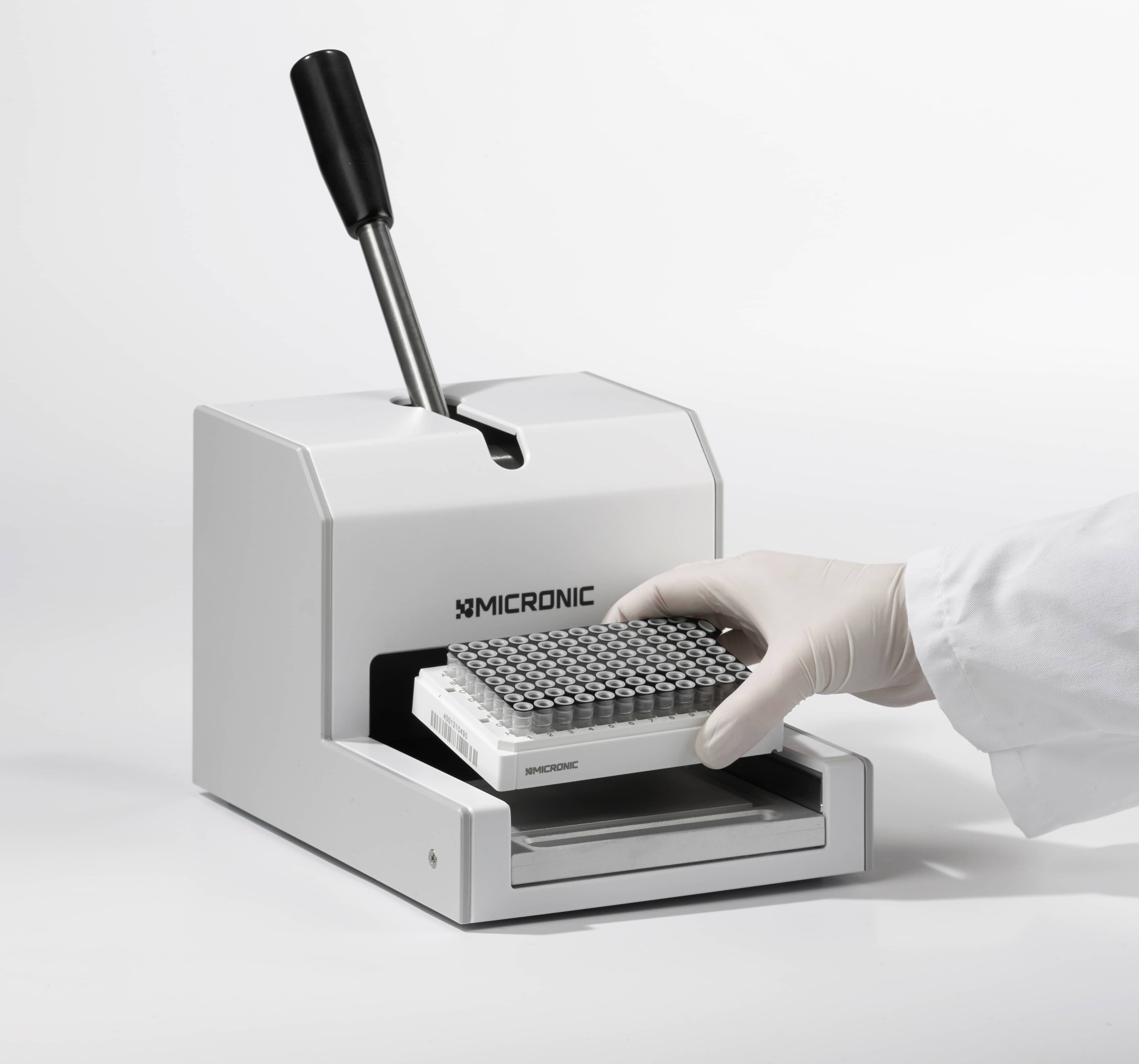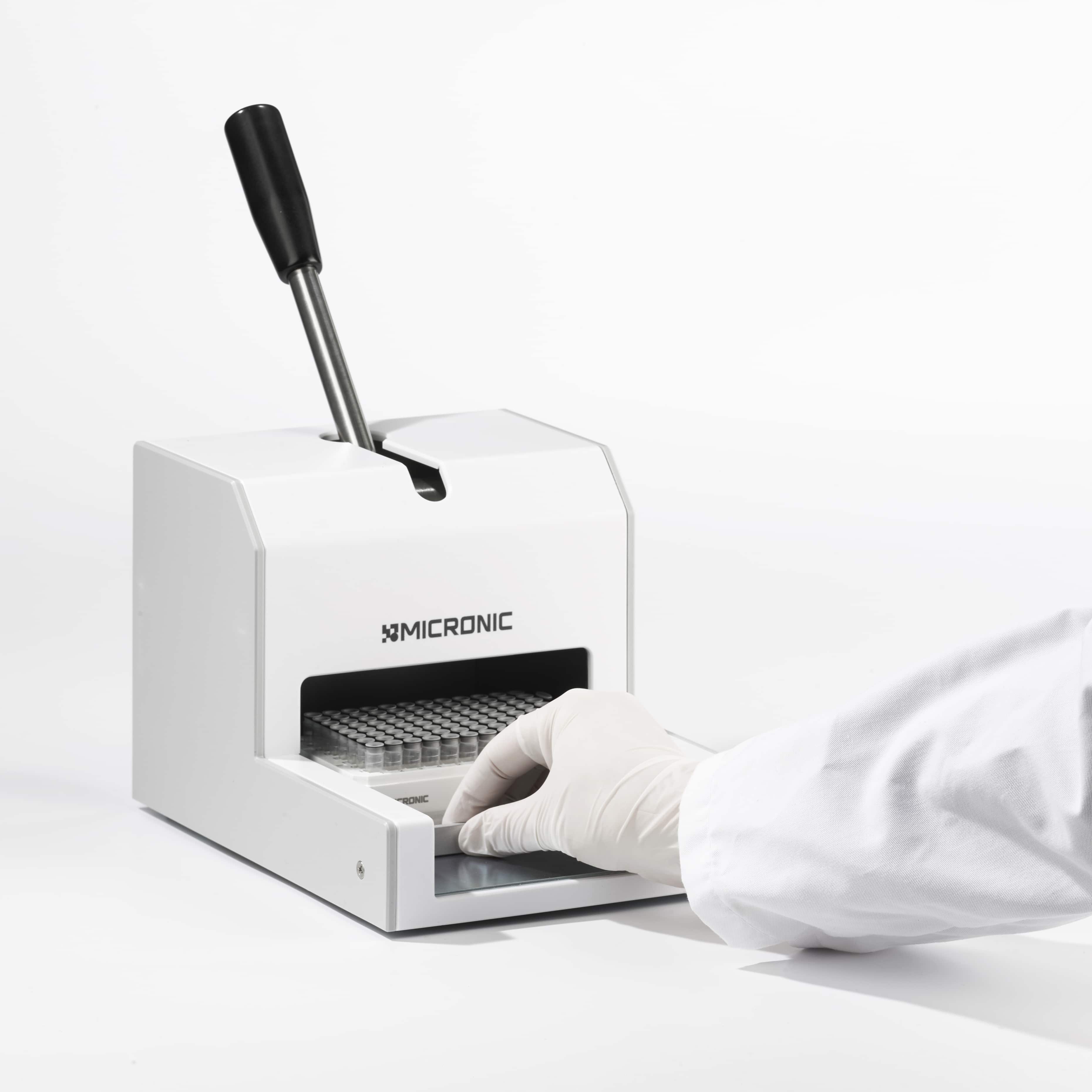 The Micronic Push Cap Capper CP400 is a cost effective way to seal 96 push cap tubes at once. Built to meet the varying needs of different users, the Push Cap Capper CP400 can seal full or partially full racks with the complete range of Micronic TPE or EVA style capmats, capbands and capclusters.