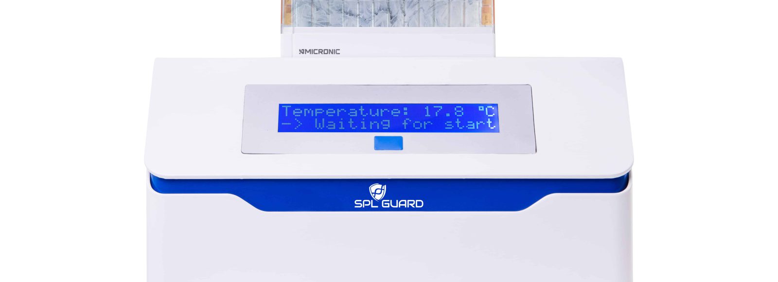 The SPL Guard Arizona is a unique thawing station for uniform and fast thawing of samples. The Arizona thaws a complete rack from -80°C to 5°C in only 6 minutes. The SPL Guard Arizona stops thawing when the desired temperature is reached and confirms this with a beeping sound. The thawing station is compatible with a wide range of SBS-format racks from different brands, such as Micronic, Azenta Life Sciences, Matrix and LVL Technologies.