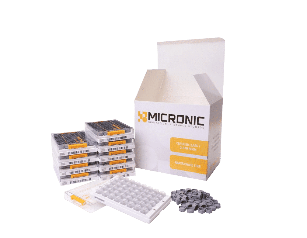 Want to get started using 2D Data-Matrix coded tubes but first want to test if they’re suitable for your application? Micronic offers Tube Trial Packs that give you the opportunity to purchase just one unit of racked 0.50ml, 0.75ml, 1.10ml or 1.40ml tubes (10 racks), and enough Screw Caps or Push Caps (TPE Capclusters) for capping all 10 racks. All Micronic products are produced and assembled in a certified class-7 clean room and are certified as RNase, DNase and Endotoxin (pyrogen) free.